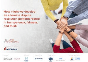It all began with the E-ADR Challenge in partnership with ICICI Bank in January 2019. Recognizing the power of technology and trusted mechanisms of Alternative Dispute Resolution (ADR) to resolve millions of disputes expediently and efficiently, Agami (then Vayam) in partnership with ICICI Bank conceptualized a national E-ADR Challenge. The purpose of the E-ADR Challenge was to identify and accelerate powerful innovations that can transform the future of dispute resolution in India. Agami launched the Challenge overview and specifications to invite inputs from the legal, business, technology, and dispute resolution communities.